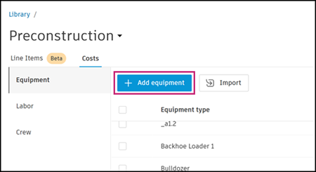 - 비용 왼쪽 탐색에서 장비, 인력 또는 인력을 선택하여 해당 범주 리스트를 엽니다.
