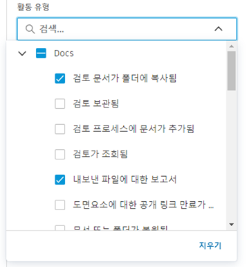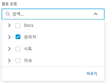 특정 도구 활동별로 필터링하려면 도구 옆에 있는 확장 아이콘을 클릭한 다음 원하는 활동 옆에 있는 확인란을 선택합니다.