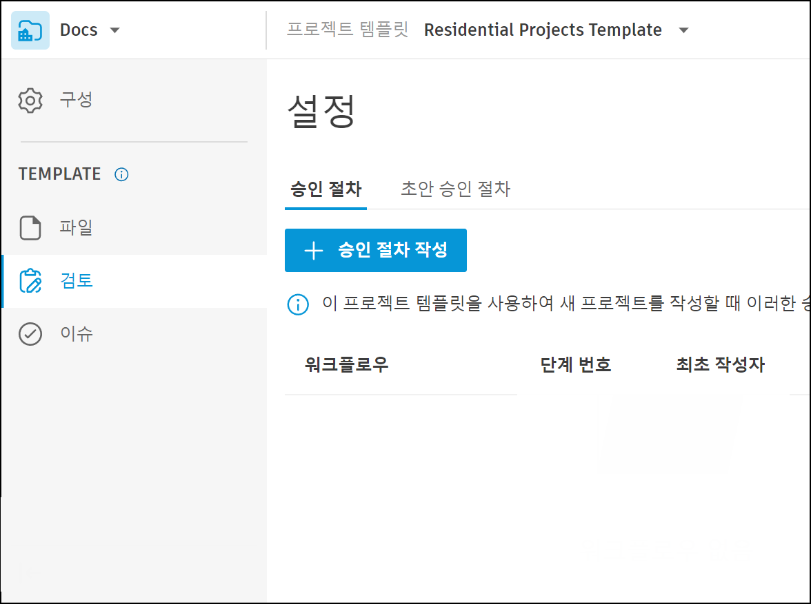 | 초안 승인 절차 | 초안 상태이며 완료될 때까지 사용할 수 없는 워크플로우를 검토합니다. |