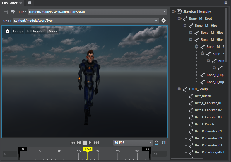 Asset Browser에서 클립을 두 번 클릭하여 편집기에 로드합니다.