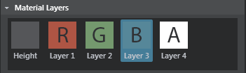 Material Layer에서 재질 맵 채널을 선택하면 이 브러시가 해당 채널에서 더하거나 뺍니다.높이 맵 페인트 모드를 선택한 경우 지형 위로 이 브러시를 드래그하면 연필 아래에서 높이가 샘플링되고 근처 지형이 동일한 높이로 평면화됩니다.