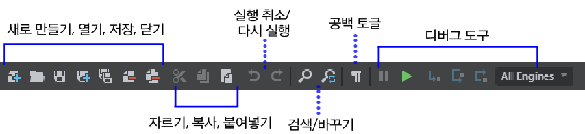 비어 있는 새 스크립트를 생성하는 방법 | New 아이콘 ![]() |