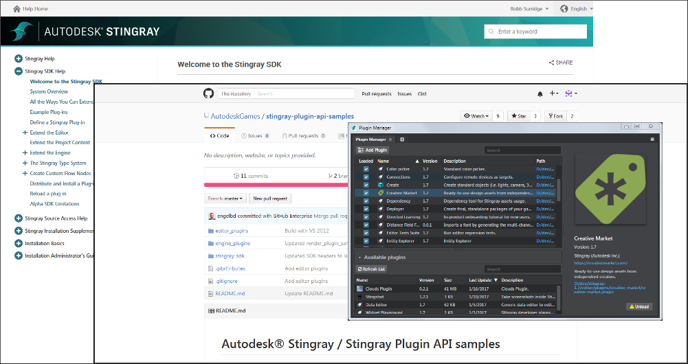 여러분에게 필요한 핵심 기능이 제공되는 것을 기다릴 필요 없이 플러그인 SDK로 직접 작업할 수 있습니다. 새 도구 및 워크플로우로 편집기를 확장하거나 런타임 엔진을 새 동작 및 새 데이터 유형으로 확장하거나 Stingray 자산을 재사용 및 재배포 가능한 모듈로 패키징하면 됩니다.