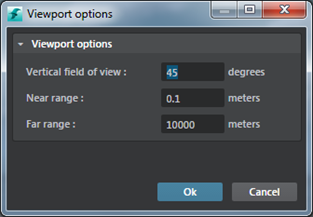 수직 뷰필드, 근거리 및 원거리 설정: | 클릭하여 Viewport Options을 엽니다. |