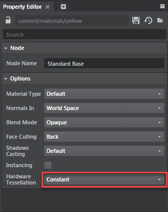 Property Editor에서 Hardware Tessellation을 Constant로 설정합니다.