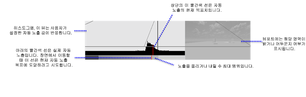 참고: 자동 노출은 장면 내의 위치에 따라 달라집니다.