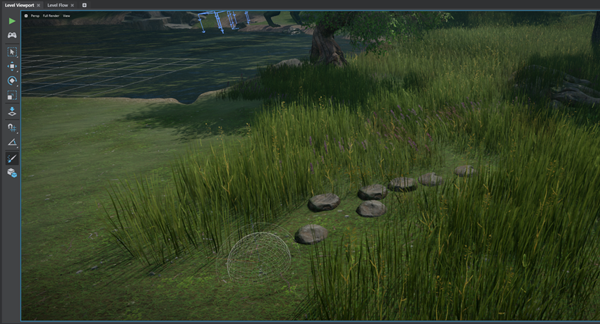 새로운 분산 도구 플러그인을 사용하여 장면에서 오브젝트를 흩뿌릴 수 있습니다. 잔디, 꽃 덤불, 포스터, 가스통 같은 경량 유닛을 분산시키고 분산 브러시로 페인트하여 수준을 빠르게 빌드하십시오. 선택한 설정을 프로젝트에 있는 모든 분산 데이터에 한 번에 적용하는 Scatter Pools Settings를 사용하여 생성 동작을 수정하십시오. 분산 도구를 사용하여 페인트를 참조하십시오.