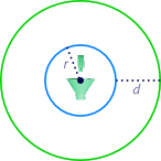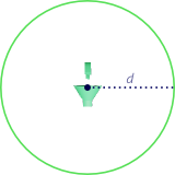 오디오 소스가 점 모양을 가졌다면 외부 범위는 오디오 소스의 위치를 감싼 구입니다. 이 구의 반지름은 사운드 이벤트의 최대 감쇠 거리(d)에 의해 정해집니다.