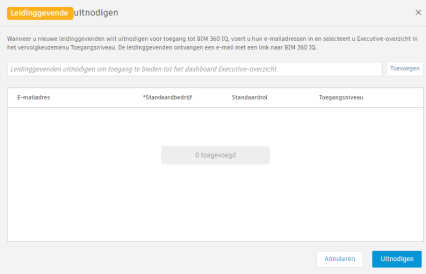 Voer in het dialoogvenster Leidinggevenden een e-mailadres in en klik op Toevoegen.