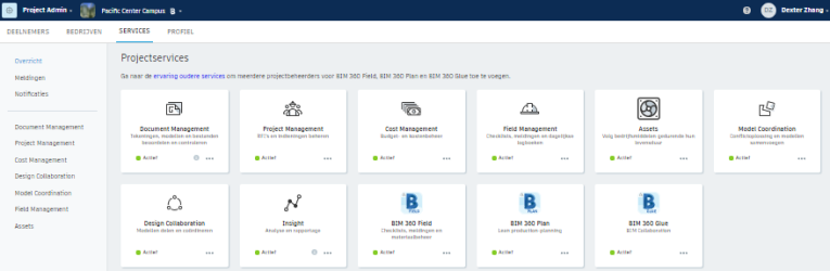Accountbeheerders kunnen projecten aanmaken, services activeren en projectbeheerders toewijzen aan die services.