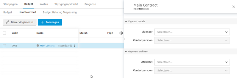Eigenaren met machtigingen voor samenwerking aan een hoofdcontract kunnen alleen details met betrekking tot hun ondertekende contract bekijken in de tabel ‘Hoofdcontract’ en het deelvenster met details. Ze kunnen ook documenten uploaden onder het kopje ‘Bijlage’ in het detailvenster. De weergegeven koppelingen en de details van afzonderlijke SOV-items zijn niet toegankelijk.