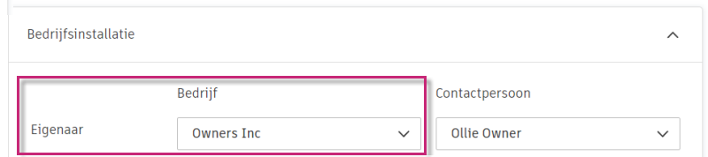 Selecteer het bedrijf en de contactpersoon voor de rol van eigenaar.