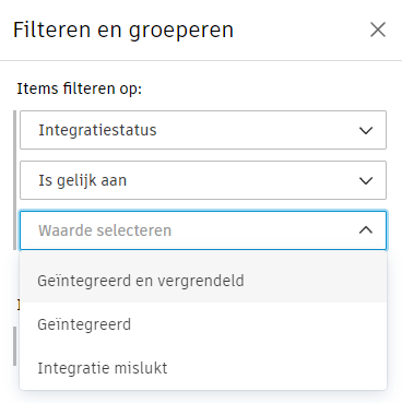 U kunt de tabelweergave filteren op basis van de status van de integratie: