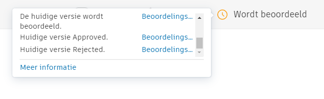 De status In beoordeling wordt weergegeven wanneer een bestand zich nog in het beoordelingsproces bevindt, inclusief wanneer een bestand wordt ingediend voor meerdere beoordelingen en wacht op goedkeuring of afwijzing.