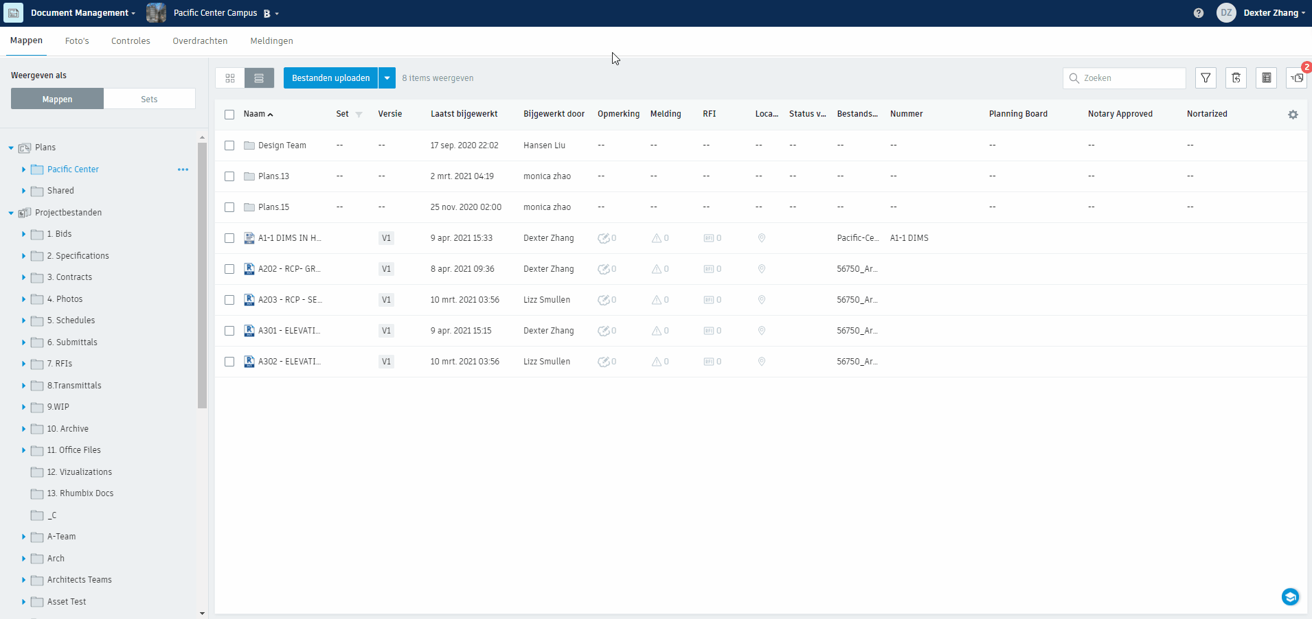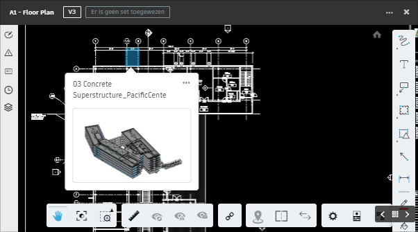 Hyperlinks worden automatisch aangemaakt wanneer u RVT, DWG, DWF 2D-tekeningen en raster- en vector pdf's met bijschriften naar de mappen Bouwtekeningen of Werktekeningen.