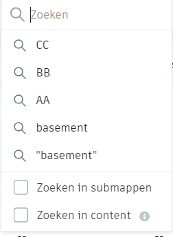 Er zijn twee zoekopties afhankelijk van de map die wordt doorzocht: