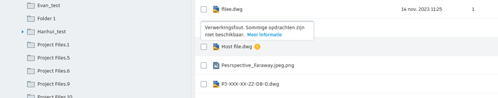 Als er een verwerkingsfout voorkomt, zal het bestand bijwerken naar een nieuwe versie. Het volgende pictogram en bericht worden weergegeven in de viewer en in de documentlijst.