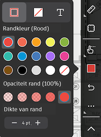Bewerk de rand en opvulling van de aantekening. Maak een selectie in de beschikbare kleuren of verschuif de balken voor doorzichtigheid en dikte naar wens.