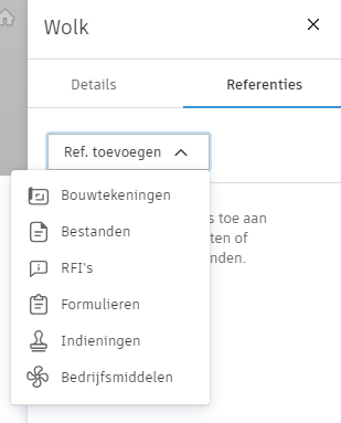 Klik op Referenties toevoegen en kies een verwijzingstype. De vervolgkeuzelijst bevat deze opties:
