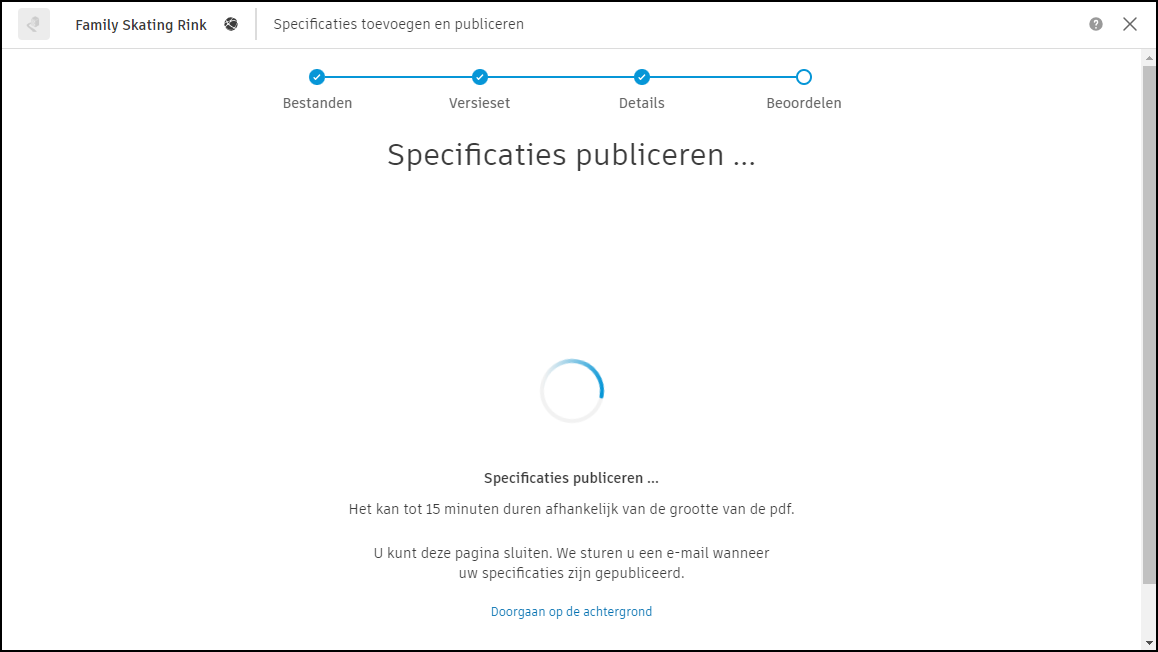 In de derde stap in het publicatieproces kunt u een specificatie-indeling kiezen en de projectlocatie opgeven.