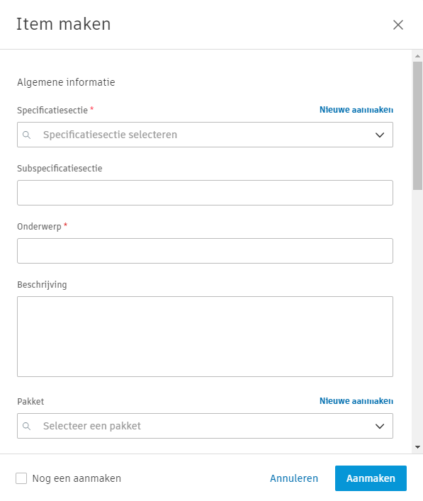 | Vereiste datum op locatie | Stel de datum in waarop het product/de materialen op de werkplek moeten zijn. |