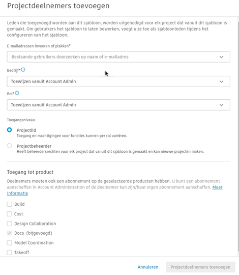 Nadat de deelnemers zijn toegevoegd, kunt u hun bedrijf, rol, toegangsniveau en producttoegang bewerken: