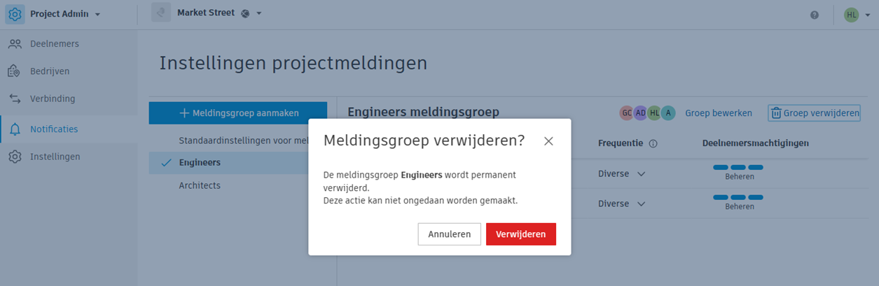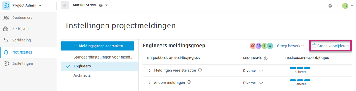 U kunt de naam van een groep bewerken en deelnemers, rollen of bedrijven toevoegen of verwijderen.