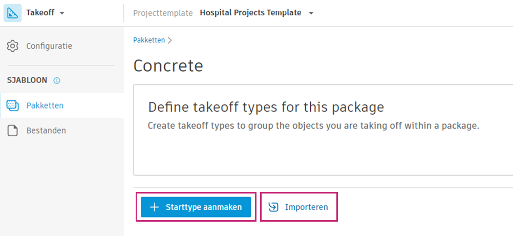 Selecteer in een projecttemplate de optie Takeoff met behulp van de productkiezer.
