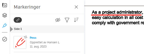 Du kan legge til markeringer i et PDF-dokument. Det kan for eksempel være nyttig under gjennomgangsprosessen for godkjenningsarbeidsflyter.