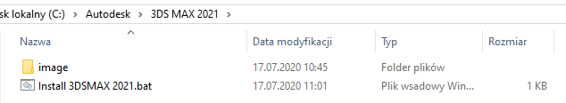 - Command line (Wiersz polecenia). Dodaj plik install<Nazwaobrazustanowiska>.bat z obrazu administracyjnego. Poniższy przykład dotyczy programu 3ds Max 2021: