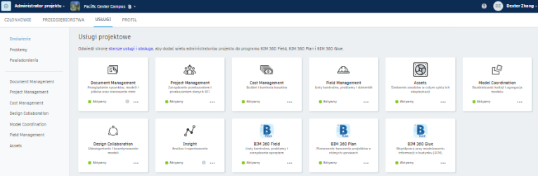 Administratorzy kont mogą tworzyć projekty, aktywować usługi i przypisywać administratorom projektów do tych usług.
