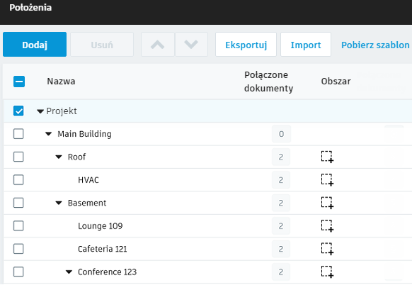 - Można wybrać położenie w hierarchii i kliknąć przycisk Dodaj, aby utworzyć podpołożenie.