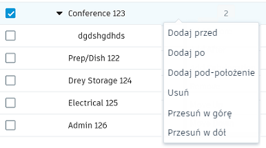 - Dodaj przed: Dodaje położenie przed wybranym położeniem na tym samym poziomie.