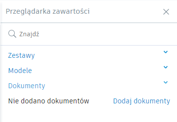 Aby dodać dokumenty pomocnicze do pakietu, wybierz opcję Dokumenty z przeglądarki zawartości i kliknij przycisk Dodaj dokumenty.