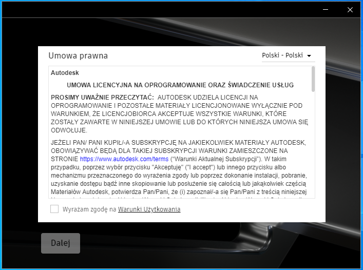 Przeczytaj i zaakceptuj warunki użytkowania.