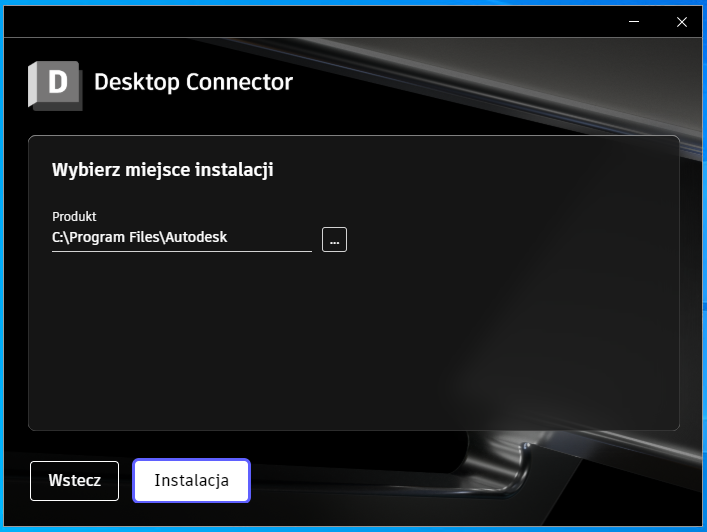Uwaga: W przypadku instalowania starszej wersji programu Desktop Connector należy najpierw odinstalować bieżącą wersję. Wsparcie oprogramowania Desktop Connector złącza jest ograniczone do bieżącej wersji. Przed skontaktowaniem się z działem pomocy technicznej Autodesk upewnij się, że korzystasz z bieżącej wersji oprogramowania.