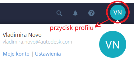 Wszystkie informacje o koncie są dostępne w sekcji Profil usługi Fusion Team. Dostęp do informacji o profilu i koncie można uzyskać, klikając przycisk Profil na górnym pasku nawigacji i wybierając opcję Profil lub Ustawienia.