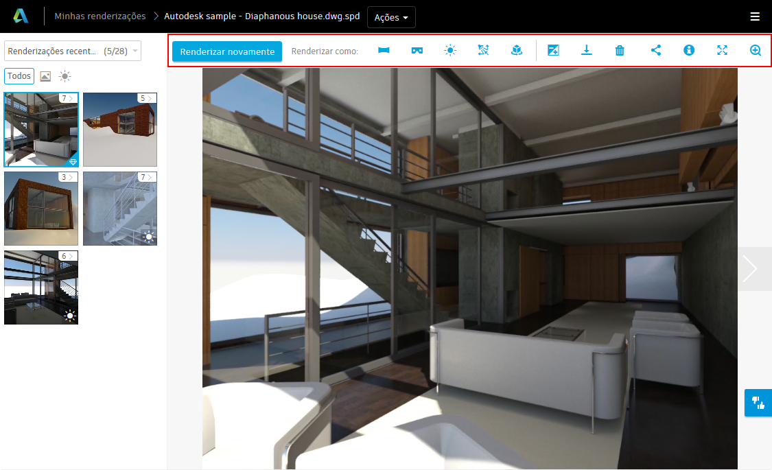 - Clique na guia Minhas renderizações no Autodesk® Rendering.