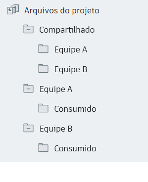Todas essas pastas são criadas automaticamente quando você adiciona as equipes que usam o Project Admin para Design Collaboration. A pasta Compartilhado e suas subpastas para cada equipe representam o espaço compartilhado para todas as equipes. A pasta Consumido e sua pasta da equipe pai representam o Espaço de equipe para cada equipe individual. As pastas Compartilhado e Consumido são essenciais para os fluxos de trabalho de intercâmbio de dados na Design Collaboration e não devem ser excluídas. Consulte Sobre o espaço da equipe para obter detalhes adicionais sobre o Espaço da equipe e sua funcionalidade na Design Collaboration.