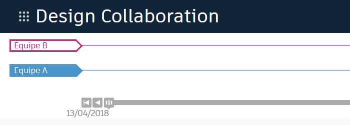 Vemos as duas equipes na linha de tempo do projeto na Design Collaboration.