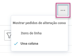 Para exibir os pedidos de alteração como colunas, clique no menu de três pontos e selecione a vista.