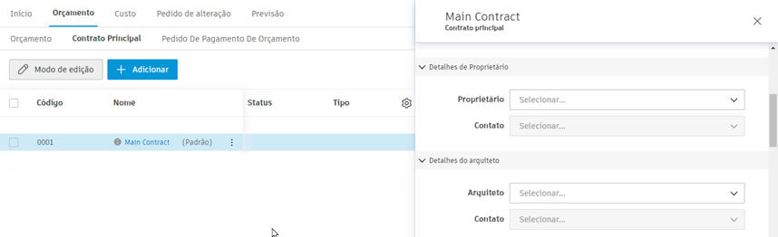 Os proprietários com permissão de colaboração no Contrato principal só podem visualizar detalhes relacionados ao contrato assinado na tabela Contrato principal e no painel Detalhes. Eles também podem carregar documentos na seção Anexo no painel Detalhes. Os links exibidos e os detalhes de itens individuais do SOV não estão acessíveis.