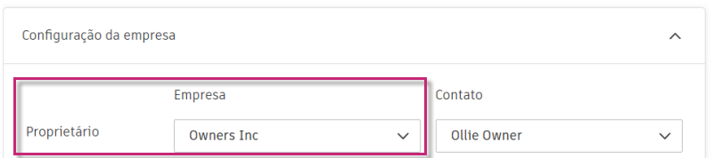 Atribua o proprietário correto na seção Detalhes do proprietário do painel desdobrável do contrato principal. O acesso colaborativo verificará a configuração da empresa no submenu e no endereço de e-mail do contrato principal.