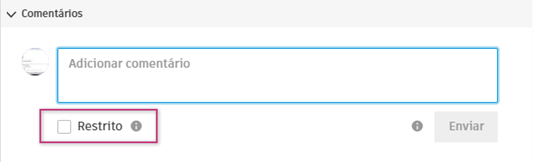 Os membros com permissões de Controle total ou de Administrador verão uma caixa de seleção na caixa de comentários. Se esta caixa de seleção estiver marcada, o comentário será marcado como Restrito.