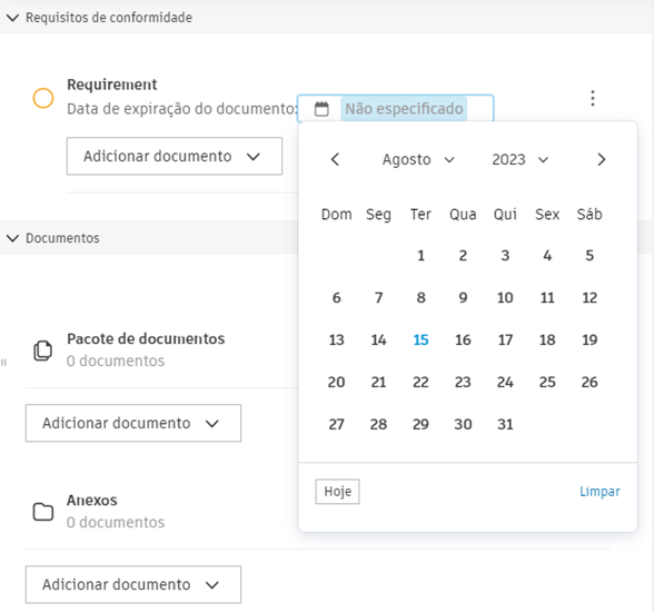 Também é possível definir uma data de expiração de documento para cada item que necessite.