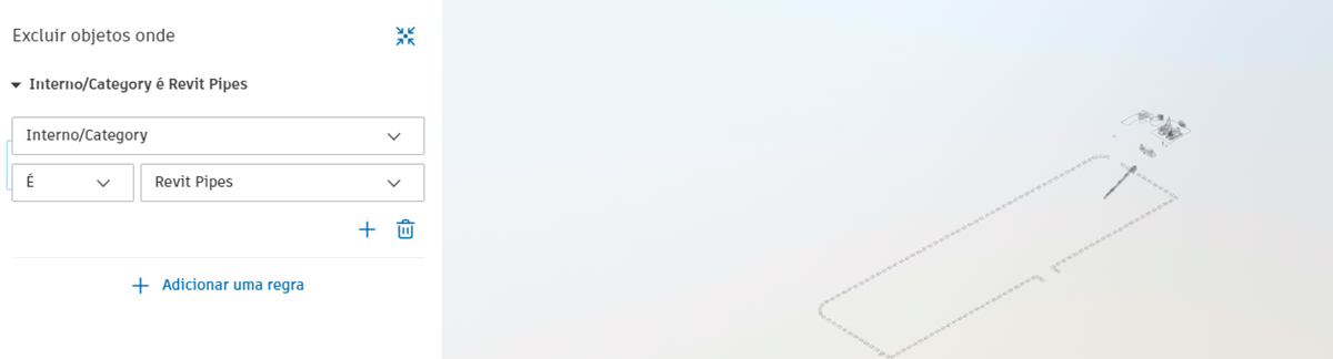 Os modelos selecionados serão carregados no visualizador modal. Você pode investigar esses modelos e procurar propriedades relevantes e aplicar regras para excluir objetos.