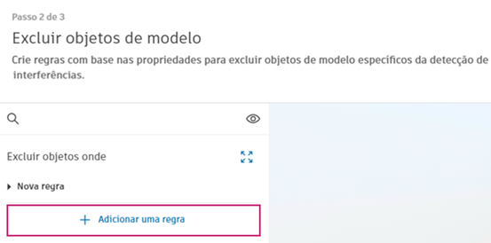 Isso inicia a Etapa 2 de 3 do processo de criação da exclusão de objetos. As regras anteriores são exibidas no painel lateral e realçadas no visualizador.