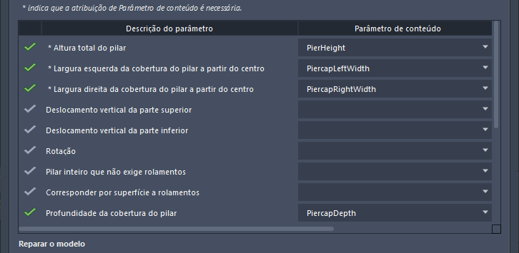 Foi adicionada uma lista de todos os parâmetros que podem ser usados pelo InfraWorks para controlar o conteúdo paramétrico de ponte e túnel.