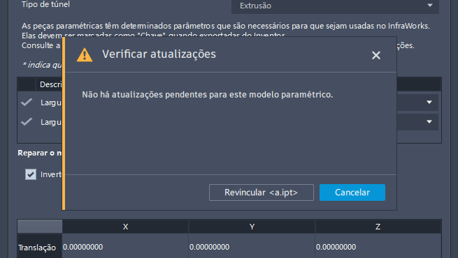 Agora, a opção Verificar atualizações oferece suporte a estruturas transversais, rumos, longarinas varridas, decks de ponte e seções de túnel.