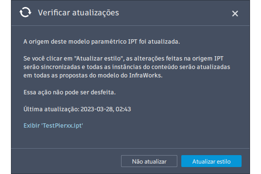 Vincular a uma versão de arquivo, localização ou tipo de arquivo diferente para componentes paramétricos no InfraWorks